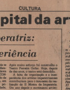 Em 1986, Imperatriz vivia o contraste entre o crescimento estrutural e a violência marcada pela pistolagem e o assassinato do Padre Josimo. Mas uma forte efervescência cultural e artística florescia na cidade, buscando consolidar a identidade local e a resistência social.